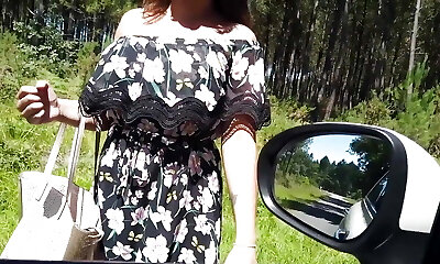 Cab driver plays with huge milkings of an unexperienced cock-sucking MILF while driving her home