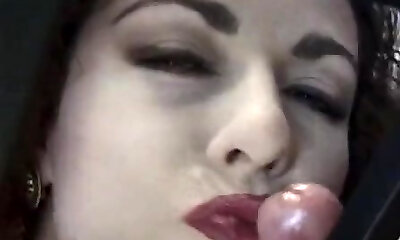London Giana sucks and rubs a shaft and gets jism on her lips