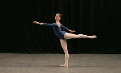 Flexible and uber-sexy ballerina Annett A poses fully naked on a gray sofa. Full backstage in 8 parts (part 5)